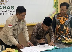Kegiatan yang berlangsung di kantor Baznas Riau tersebut juga menjadi momentum penting bagi kedua lembaga untuk memperpanjang kerja sama melalui penandatanganan nota kesepakatan (MoA).