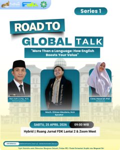 Mengangkat tema “More Than a Language: How English Boosts Your Value,” kegiatan ini dilaksanakan secara hybrid pada Sabtu, 25 April 2026 pukul 09.00 WIB, melalui Zoom Meeting dan secara langsung di Ruang Jurnal Fakultas Dakwah dan Komunikasi (FDK) lantai 2. Acara ini menghadirkan Moch. Dimas Maulana, M.A,. dosen Fakultas Dakwah dan Komunikasi UIN Sunan Ampel Surabaya sebagai narasumber.